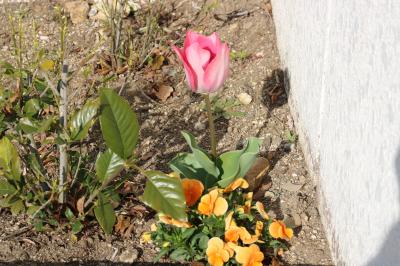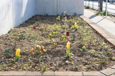 南門に植えたムスカリやチューリップがきれいな花を咲かせています。パンジーも冬のときより花が増え、根がしっかりとしてきました。日当たりや土の条件があまりよくない中、けなげに咲いている花々を見ると、とてもいじらしく感じます。そして、自ら根をはり、葉をつけ、花を咲かせようとしている生命のたくましさに、子どもたちが重なります。この一年間、どの子も力をつけ、成長してきました。開拓魂をもつ豊っ子として今後も大きくのびやかに成長していってほしいと願っています。