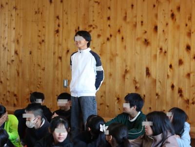 また、6年生への応援歌として、在校生全員で「栄光への架け橋」を歌いました。事前に体育館に集まり、みんなで練習して、思いを届けました。涙しながら聞き入っている6年生の姿が見られました。