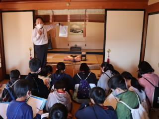 二川宿本陣資料館では,学芸員さんの説明を受けながら,本陣,資料館,特別展の見学をしました。子どもたちは,熱心にメモを取りながら見学をしていました。
