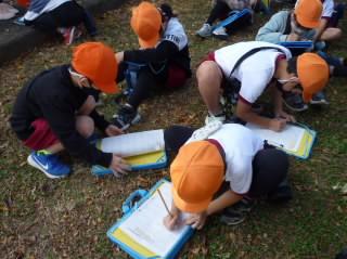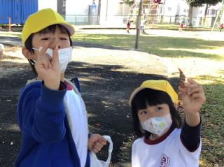 1年生が生活科の授業で公園探検に出かけました。11月2日は切替公園,11月11日は田尻前公園に出かけ,「秋見つけ」をしました。虫探しや落ち葉・どんぐり拾いなどを行いました。子どもたちは,たくさんの秋を見つけていました。