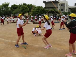 運動の楽しさを味わわせ,体力の向上をはかるために,全校体育を月に1度行っていきます。縄跳び運動や体つくり運動を行っていく予定です。