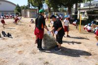運動会に向けて、全校で運動場の草取りや石拾いをしました。前日に雨があったせいか、草は比較的抜きやすく、短時間でたくさん取ることができました。高学年も低学年も、時間いっぱい働きました。これで、安心して運動会の練習ができそうです。活動が終わった後も引き続き草を抜いていたら、教室へ戻る途中の4年生数人が「手伝います!」「運びます!」と助っ人に来てくれました。ありがとう。環境委員会の子たちもお疲れ様でした。