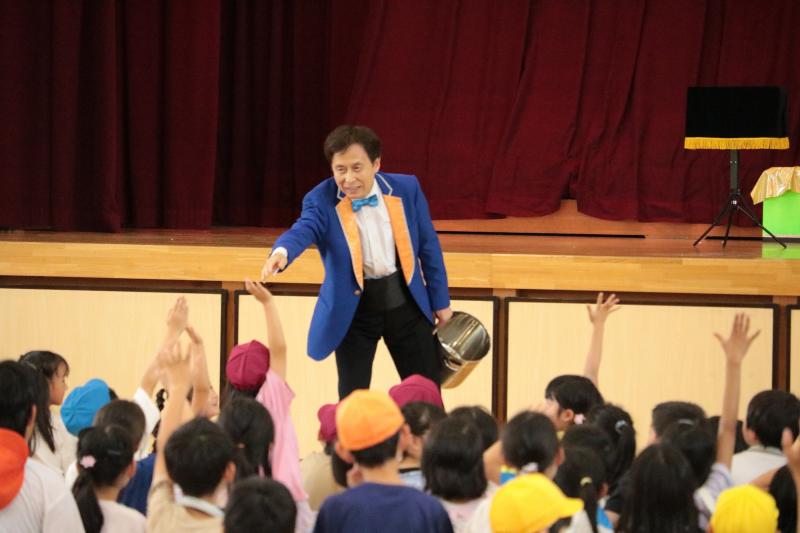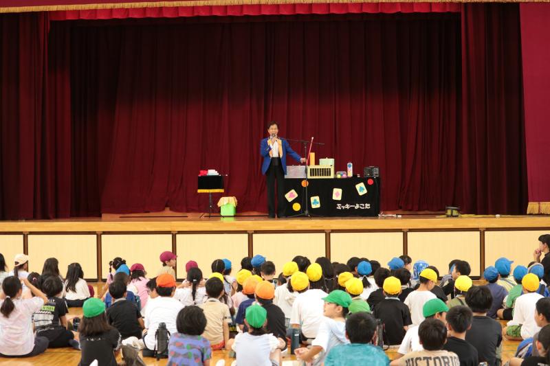 当日は120名ほどの子どもたちが集まり、ミッキーさんのマジックに歓声をあげていました。