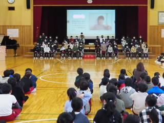 6年生を送る会では,6年生一人一人を紹介したり,各学年がクイズや歌などで感謝の気持ちを伝える出し物をしたりしました。6年生を送る会のあと,6年生から5年生への引継ぎ式も行いました。