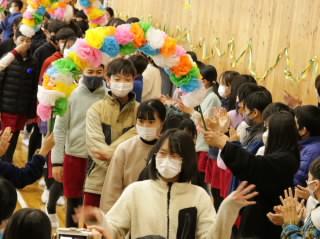 3月2日に,6年生を送る会を行いました。昨年,一昨年は,リモートで行いましたが,3年ぶりに全校が体育館に集まって行いました。