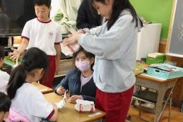 今年度は、互いをより知ることができるよう、ペア学年での交流も積極的に行う予定です。今日は、6年生が1年生の教室を訪れ、やまもも班のペアの子と自己紹介をし合いました。18日から始まる1年生の給食に向け、牛乳パックの始末の仕方も教えてくれました。この時間ですっかり打ち解けた子どもたち。今年度の「やまもも班活動」も楽しく充実したものになりそうです。