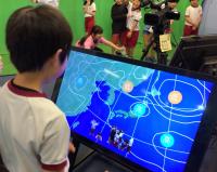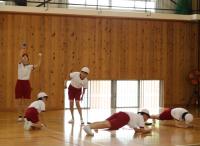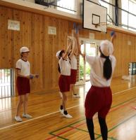 校内をまわっていたら、6年生が体育館でおもしろそうな授業をやっていました。