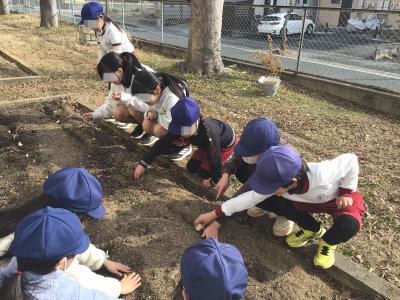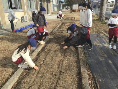 1年生が、6年生と一緒に花壇にチューリップの球根を植えました。植えどきが少し遅れてしまいましたが、新1年生が登校するころにきれいな花を咲かせてくれるかな。楽しみです。