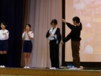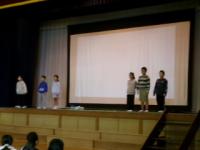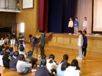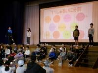 11月20日(木)の2時間目、体育館で全校児童が参加して学校保健委員会を行いました。今回のテーマは「メディアと姿勢について考えよう」でした。最初に、保健委員会がメディア機器の使用について、劇で紹介しました。その後、パフォーマンスリハセンターの方から、メディア機器を使用する時の姿勢や、その姿勢を保つためにどこを鍛えるといいのかを教えていただきました。子どもたちはよい姿勢を保つために気をつけなければいけないことや姿勢を保つためのトレーニング方法を学びました。