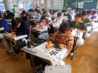 11月26日(水)に競書大会が行われました。1・2年生は硬筆、3~6年生は毛筆で字を書きます。みんな心を落ち着かせ、丁寧な字を心がけて書いていました。