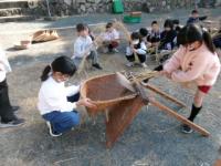 12月1日(月)、3年生は下条小との合同授業で多米町にある「豊橋市民俗資料収蔵室ふるため」に行ってきました。昔使用していた農業や漁業、生活で使用していた道具などの展示を見学しました。また、昔の道具を使って脱穀や籾(もみ)をはがして、玄米づくりを体験しました。昔使われていた道具を実際に見たり、玄米づくりを体験したりして、とてもよい合同授業になりました。