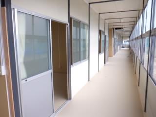 廊下の様子です。床も壁も天井もオフホワイトで窓もたくさんあるため、とても明るく清潔な印象です。【672】