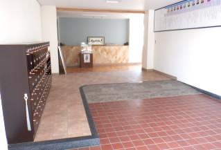 玄関もおしゃれになりました。ゆるやかなスロープでバリアフリーになり、下駄箱は新品です。校長室にあった沿革史がまさかのシンデレラフィットで設置され、突き当りの「夢たま」と「やればできる」の額がお客様を出迎えます。【803】