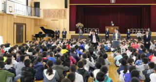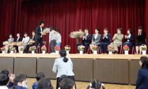 今日の午後、昨年度末に異動となった教職員をお招きしての退任式がありました。代表の子どもからの心のこもったお別れのことばと花束の贈呈のあと、お一人お一人から思いのこもったご挨拶をいただきました。最後は子どもたちの歌声でお見送りしました。退任された皆さま、ありがとうございました。【191】