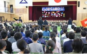 今日の2時間目に「1年生をむかえる会」が行われました。各学年がそれぞれの準備をきちんとすすめたり、運営委員会や6年生がとても立派に運営したりしました。その結果、1年生だけでなく全児童の笑顔と笑い声があふれるすばらしい会となりました。【198】