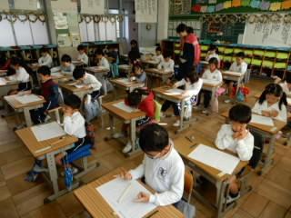 今日の1時間目は、本年度2回目の全校一斉の算数チャレンジテストでした。1年生から6年生まですべての教室から緊張感が伝わる1時間でした。1年生も時おり指をつかいながら計算問題に真剣に取り組んでいました。【119】