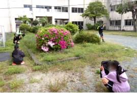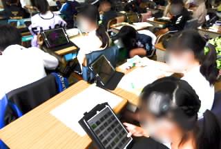 5年生の図工の授業でタブレット端末を使っていました。1人1台のiPadのカメラ機能を使い、自分の描きたい場所を自由に撮影していました。今週末は「お試し持ち帰り」の予定です。【550】