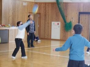 1月26日、6年生が学校スポーツトレーナーの神谷先生によるバレーボールの授業を受けました。アンダーハンドパス、オーバーハンドパスでは、膝を曲げて構えるなど、ポイントをわかりやすく教えていただき練習しました。子どもたちは、とても楽しみながら学習することができました。【1030】