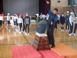 1月19日、5年生が学校スポーツトレーナーの神谷先生による授業を受けました。跳び箱運動の台上前転が上手にできるように、踏み切り板の強い踏み切りの仕方、手のつき方、足をそろえたきれいな前転の仕方について、教えていただき練習しました。子どもたちはとても上達し、技を発展させて、大きな台上前転や首はね跳びに挑戦する子もいました。【1027】