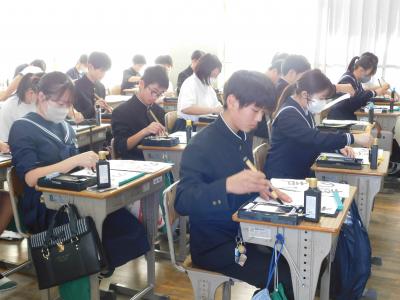 11月7日(金)に競書大会を行いました。2年生の課題は「喜びの声」です。国語の授業での練習を通して、どの生徒もよりよい字を書くことができました。