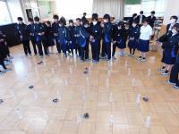 2年5組を対象に、豊橋商業高校の3年生から、プログラミングをもとに車を動かす方法を教えてもらいました。