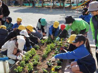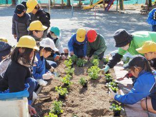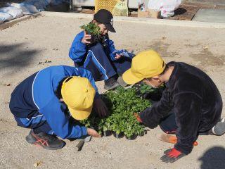 つばめ学習で「富士見校区のすてき」を見つけてきた3年生。自分たちでもできることはないかと相談したところ、自治会のかたから坪ノ谷公園の花壇に花の苗を植えませんかとのお誘いをいただきました。