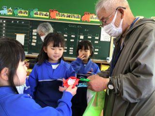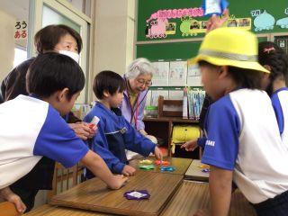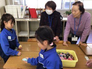 ニューレイク(老人会)のかた13名が、1年生と昔遊びをするために来校されました。