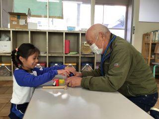 昔遊びをするときには、老人会のかたが優しく教えてくださいました。