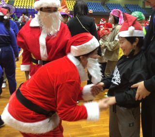 たくさんのサンタさんと一緒に歌ったり踊ったりしました。