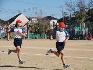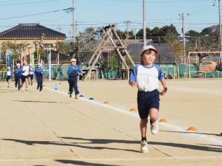 青空の下、持久走大会が行われました。かけ足タイムや体育で鍛えた力を力いっぱい発揮していました。
