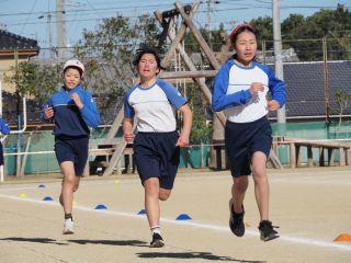 【5年生】運動場のトラックを走った後、学校周辺の遊歩道も力強く走っていました。