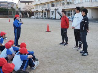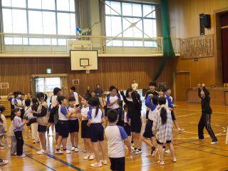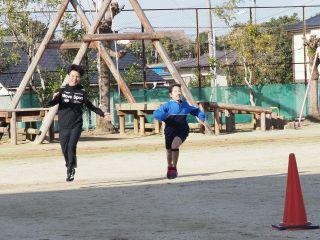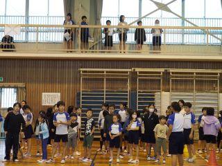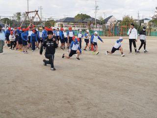 授業の最後は、講師の先生と競走。5年生は運動場のトラック1周、6年生は2周です。ゴールまで全力で走った姿は見事でした。