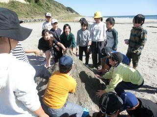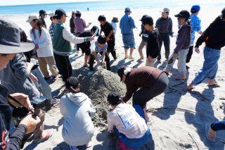 青い空、青い海、白い波。太平洋を一望する海岸での砂浜での活動です。