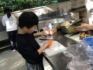 夕食のメニューはカレーライス。みんなで協力して、おいしくでき上がりました。