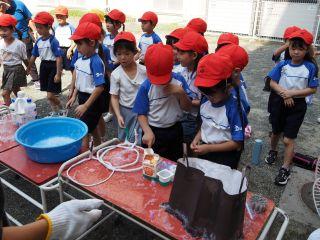 「おおきなしゃぼん玉を作りたい」「今度は1年生のみんながしゃぼん玉を作って、おやじの会のみなさんに見てもらいたい」と、1年生のしゃぼん玉作りへの挑戦がスタートしました。