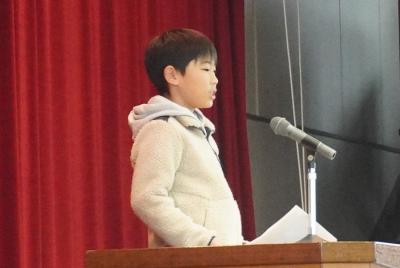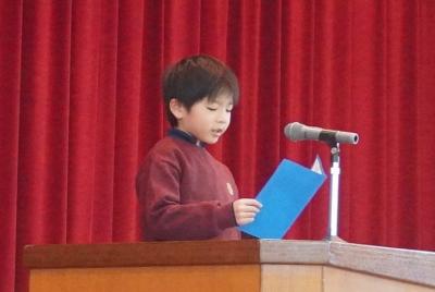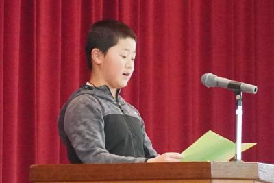 始業式では、2年・4年・6年の代表児童が、「3学期にがんばりたいこと」を発表しました。