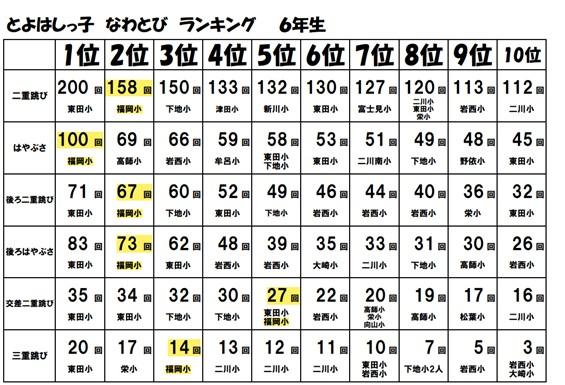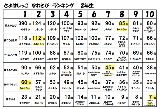 なんと、福岡小学校は、6年生と2年生で上位にたくさんの子が入っています。