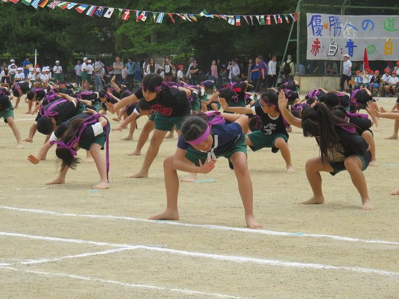今年は、4年生と共に、ソーラン節にチャレンジしました。黒いTシャツを身につけ、はちまきを締め、緊張した雰囲気の中子どもたちは全力で踊り切りました。