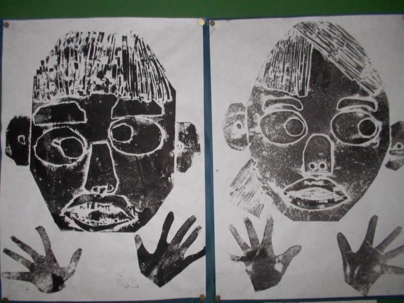 12月と1月の図工の授業で、1年生は紙版画を作成しました。