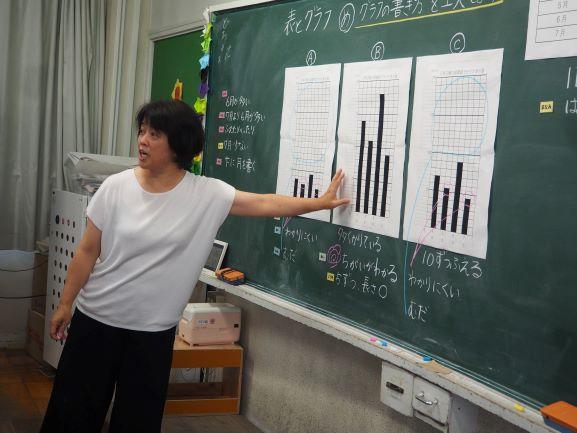 3年2組で算数の授業研究会がありました。「表とグラフ」の授業です。