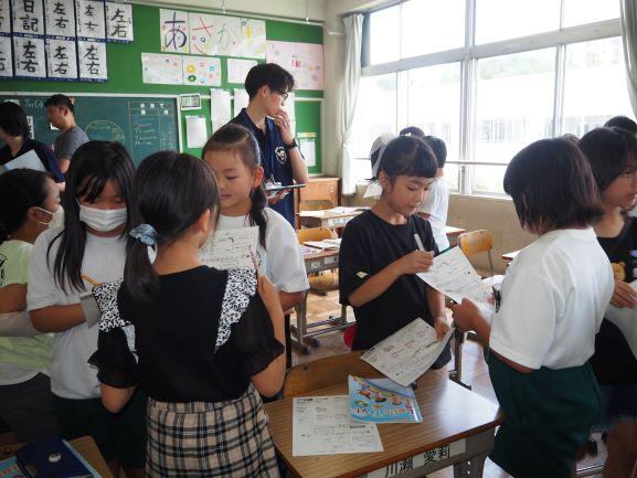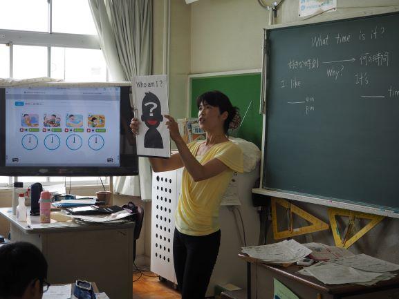 4年1組で英会話の授業研究会がありました。I like 7 p.m.(Why?) it's soccer time. I like~などとやりとりをしながら、自分のお気に入りの時間について伝え合う活動をしました。 隣り同士だけではなく、席を離れて自由にやりとりする場面があり、英語で伝えようとがんばっていましたよ。