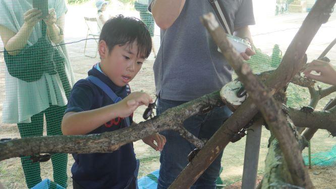 子どもたちは、家に持ち帰って飼おうと、木にとまっているカブトムシを夢中で選んでいました。