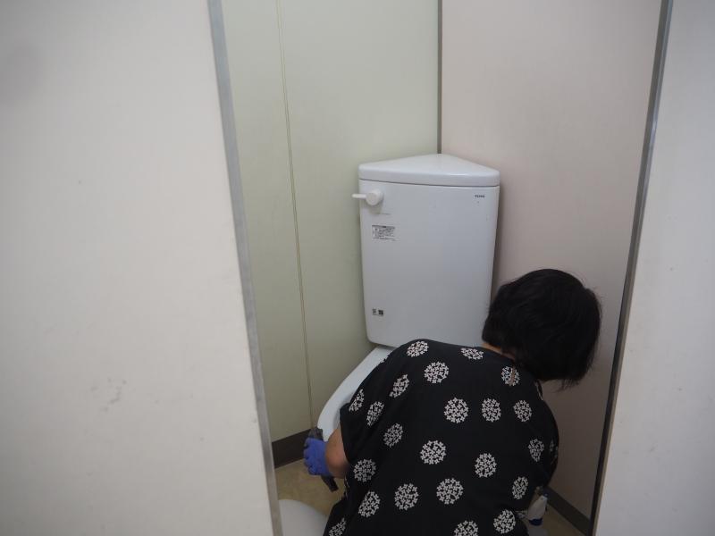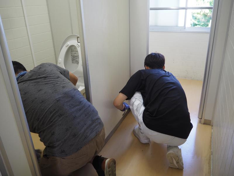先生たちが、ふだんはなかなか手が回らないトイレの掃除をしました。