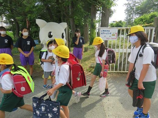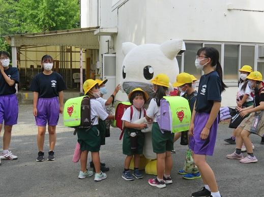 今朝、南部中の南丸くんと生徒会のみなさんがやってきました。福岡小の計画委員と集会委員と一緒に、登校してくる全校児童に向けてのあいさつ運動です。先週から南丸くんがやってくるのを楽しみにしていたので、子どもたちもはりきってあいさつをしていました。