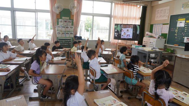 給食ではなくて弁当、休み時間にはスナック、そうじは大人の仕事などの話に、「うらやましい~」と連発していました。