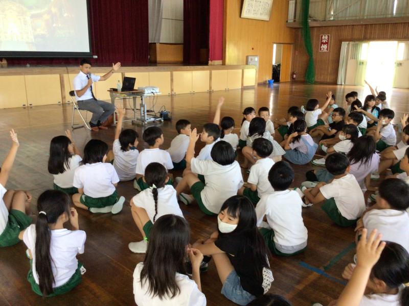 今日は、豊橋市役所に勤めるジャスティン先生をお迎えして、アメリカのことをたくさん教えてもらいました。