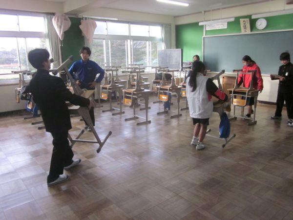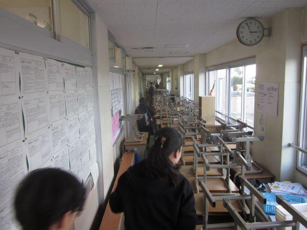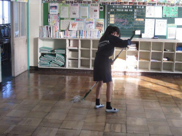 新年を迎える前に教室のワックスがけをしました。帰りの会後、みんなで机や椅子を廊下に出しました。その後、美ボラ委員の生徒がワックスをかけてくれました。翌日の朝、登校してきた生徒が机や椅子を元どおりにしてくれました。少しはやく登校してくれた生徒もいたようです。