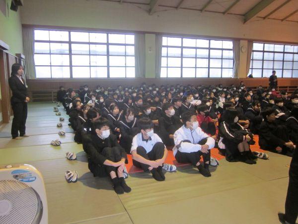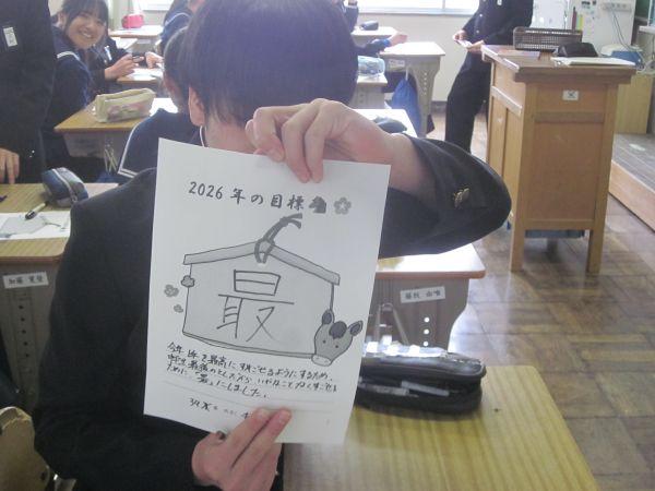 令和8年が始りました。今年もよろしくお願いします。オンライン始業式での代表生徒の決意では、努力したいを力強く話してくれました。その後の学級学年活動では、学年集会だったり、宿題を集めたり、今年の目標を考えたりしました。また、2年生は百人一首大会を開催しました。始業式で校長から「お正月は古くから伝わる日本の伝統を経験できる」という話もありました。まさにその姿でした。