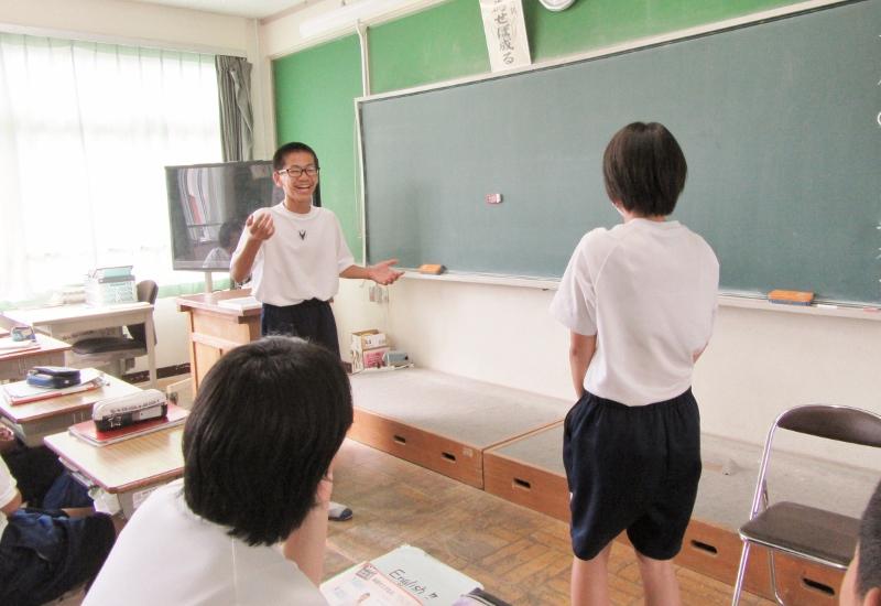 英語の授業で 投稿日時 : 2019/10/08 主担 カテゴリ:今日の出来事 1年生の英語の授業で、「体調をたずねる」という単元で、ペアでスキット(会話文)をつくり、学級で発表を行いました。ジェスチャーを交えて表現する姿が見られました。友達の発表を楽しみながら、みんなで温かく見ました。 {{options.likeCount}} {{options.likeCount}}