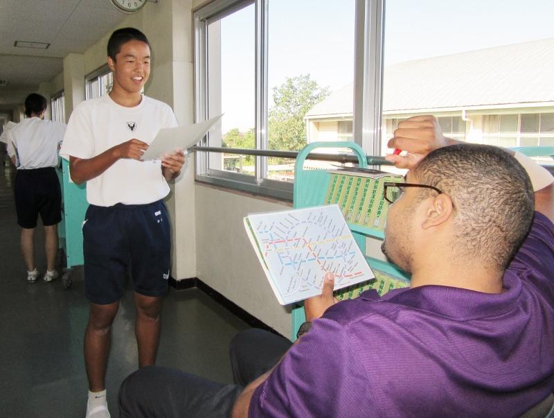 英語の授業で 投稿日時 : 2019/10/09 主担 カテゴリ:今日の出来事 3年生の英語の授業で、「道案内」の単元で、駅の乗り換えの英会話テストを行いました。ALTの先生に質問され、必死に答えていました。 {{options.likeCount}} {{options.likeCount}}